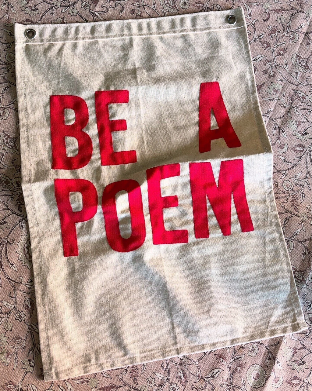 letras de tela cosidas sobre lona